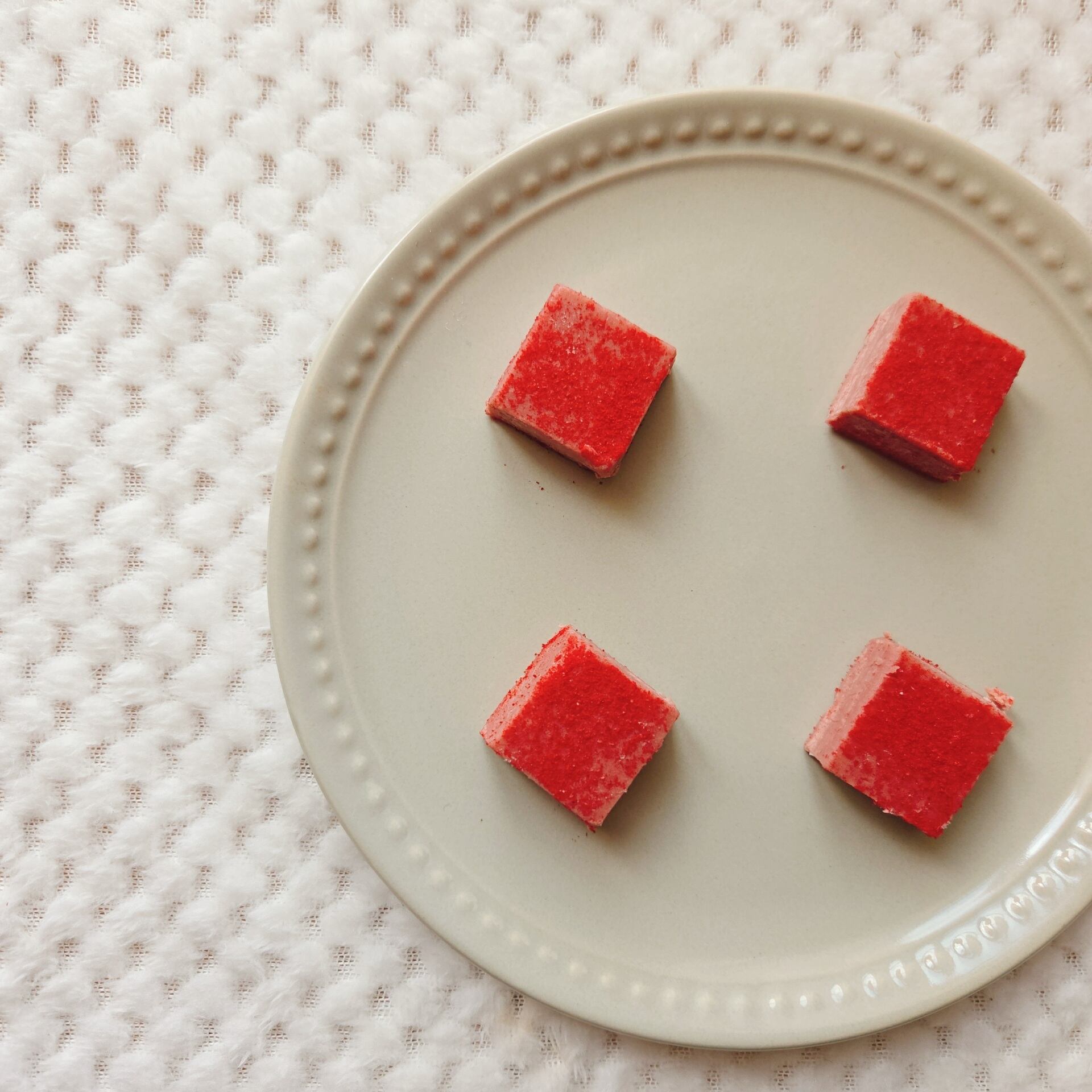 フルーティーなルビーチョコレートにラズベリーパウダーをまぶした贅沢な生チョコ。